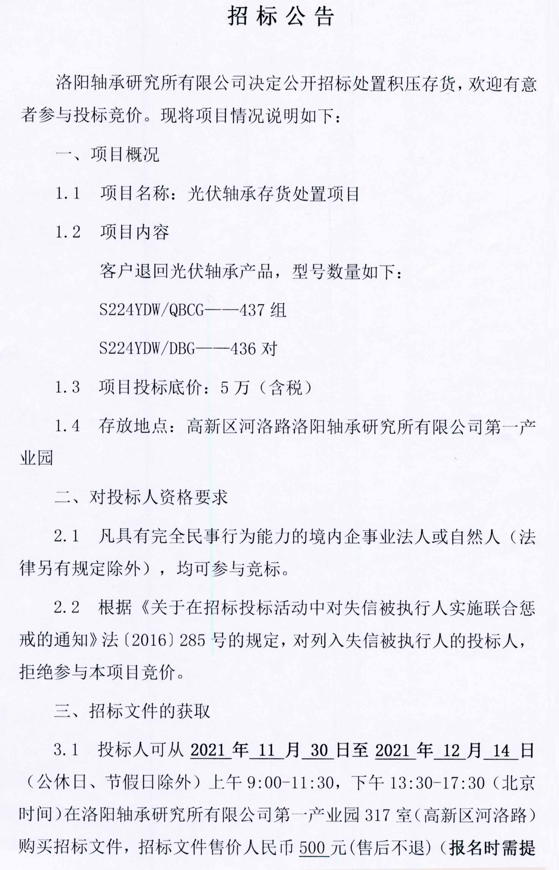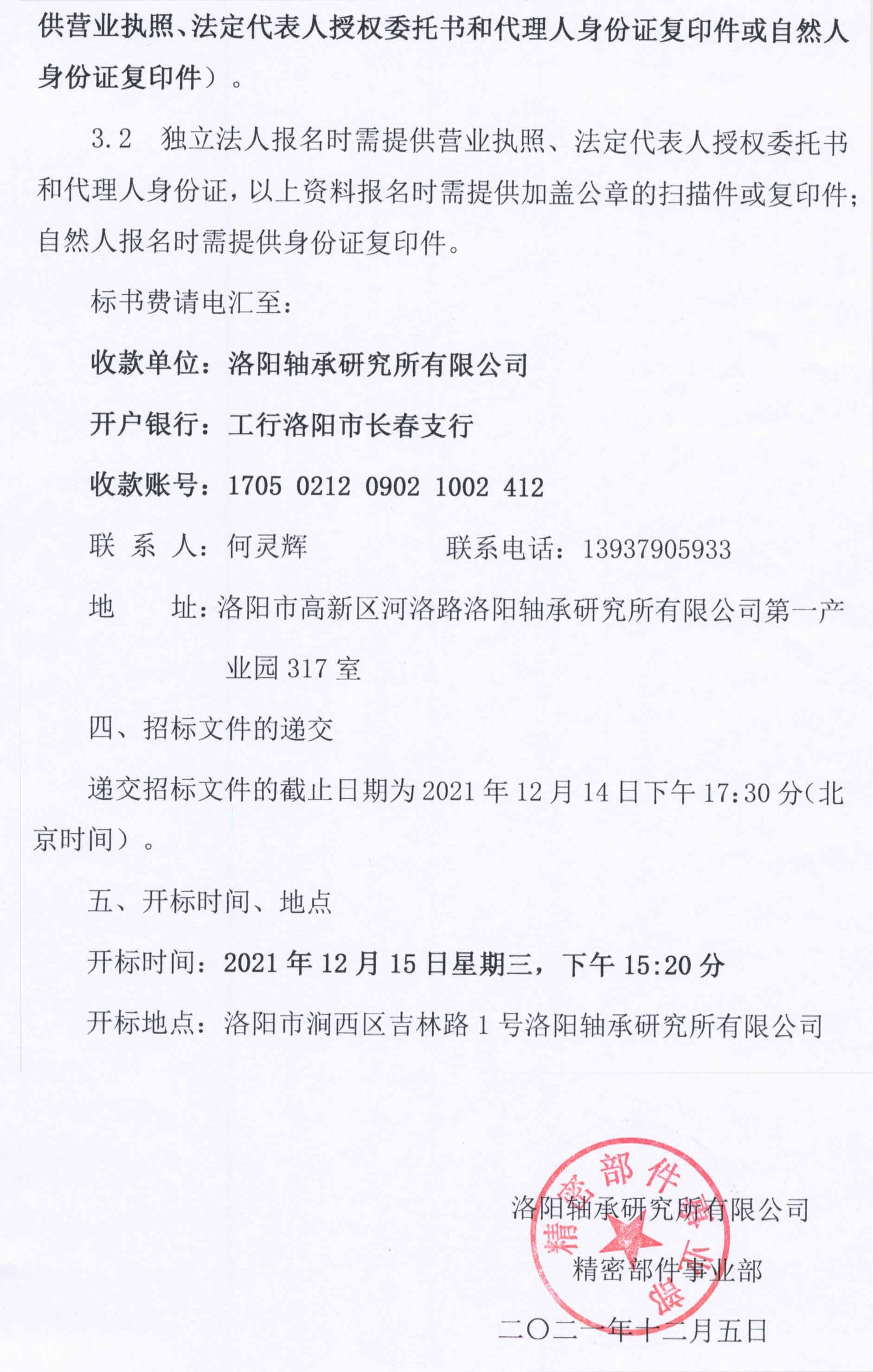文章出處:招標采購信息 網責任編輯: 洛陽軸承 閱讀量: 發表時間:2021-12-08 17:12:00