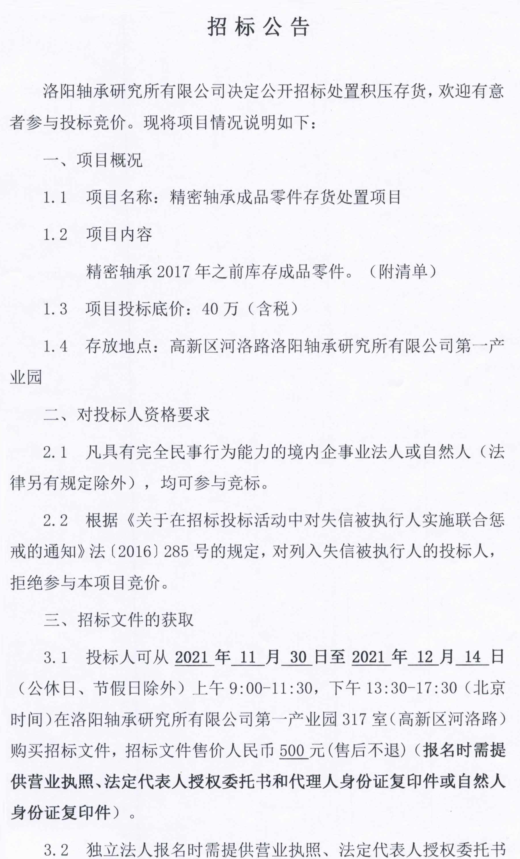 光伏軸承存貨處置項目招標公告