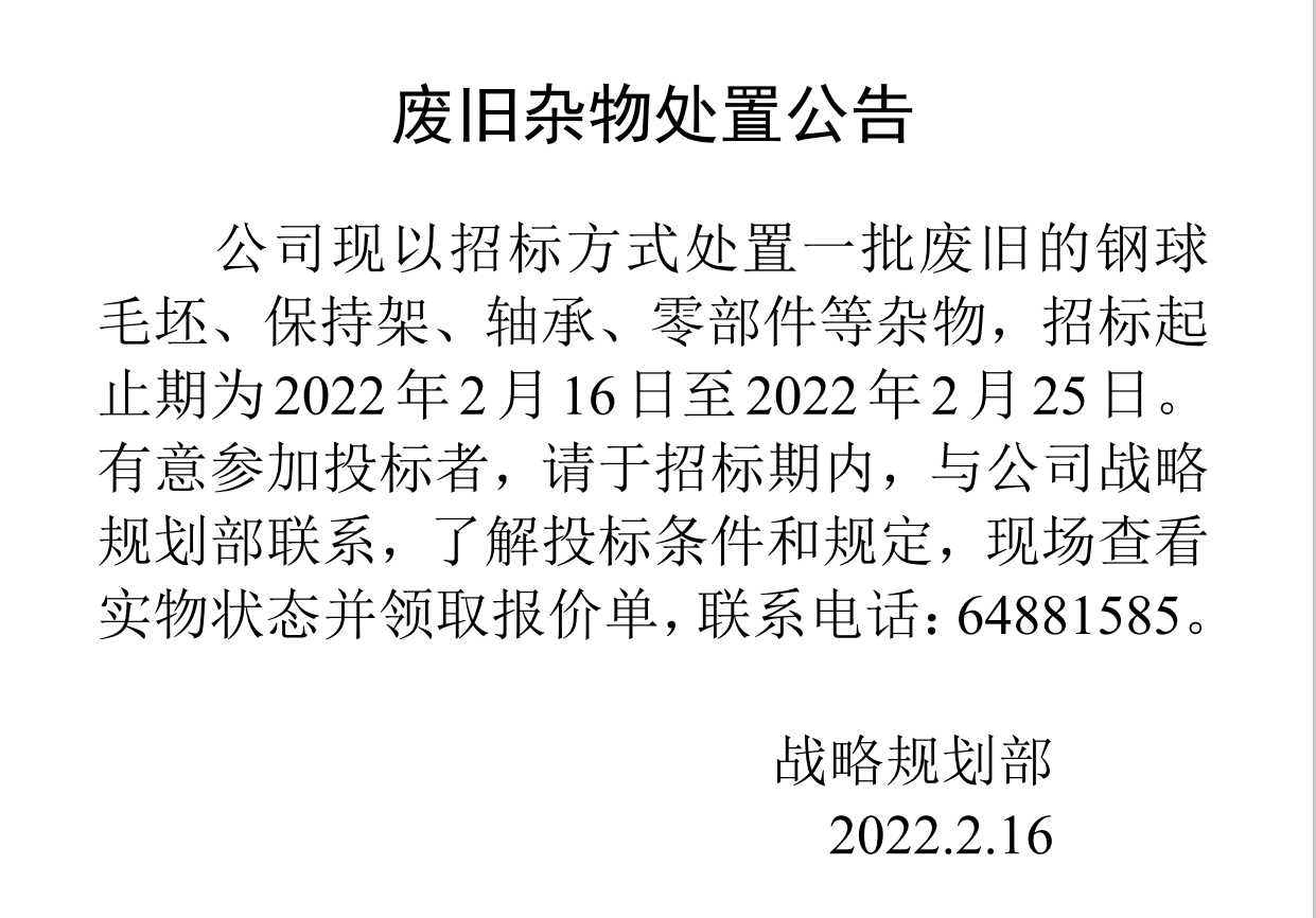 文章出處:招標采購信息 網責任編輯: 洛陽軸承 閱讀量: 發表時間:2022-02-15 16:20:58