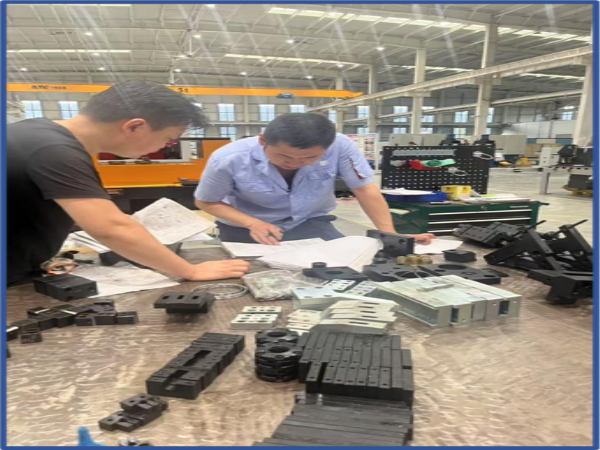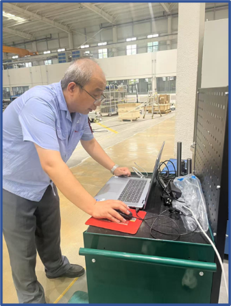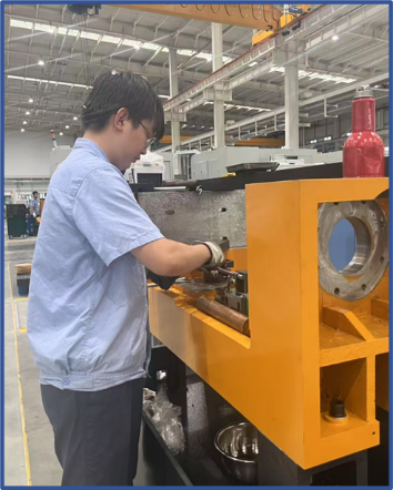 “足蒸暑土氣,背灼炎天光”,走進車間,師傅們臉頰上混雜著汗水和黑色的印痕,淺藍的衣服早已變成深藍。即便如此,設備開發部師傅們也未曾有絲毫的懈怠,嚴肅的神情和精湛的技藝彰顯著工科人的細致和專業:整齊擺放的物料嚴陣以待,調試好的零件精益求精。機器的轟鳴和師傅們的吶喊交相呼應,形成了盛夏中別具一格的交響樂。